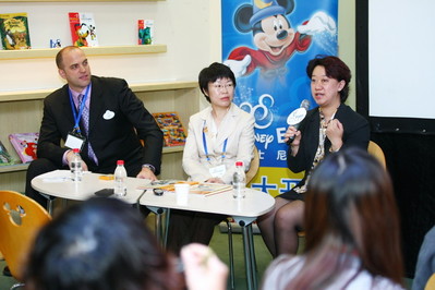 上海和北京2011年10月20日電 /美通社亞洲/ -- 日前,全球領先的兒童英語培訓機構迪士尼英語分別在北京和上海舉辦了其最新一屆的家長會,與家長們分享了迪士尼英語最新的年度家長調查結果并探討了在孩子英語語言學習過程中家長的積極參與對孩子提高英語水平的重要性。參加此屆家長會的專家包括原上海師范大學外國語學院院長顧大僖教授、北京外國語大學在線教育學院院長曹文教授,以及迪士尼英語區域培訓師培訓經理劉安筑先生(Andrew Tiffany)和迪士尼英語區域語言學習總監李奈特(Lee Knight)先生。