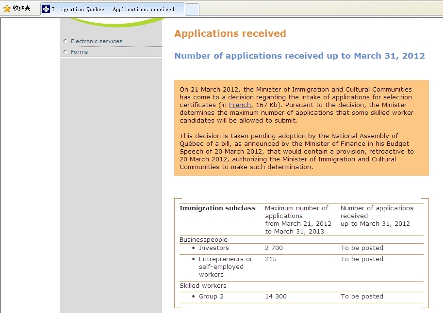 “針對(duì)投資移民政府設(shè)定了申請(qǐng)限額,自即日起實(shí)施。自2012年3月21日晚19點(diǎn)至2013年3月31日晚19點(diǎn),全球只接收2700個(gè)申請(qǐng)。”