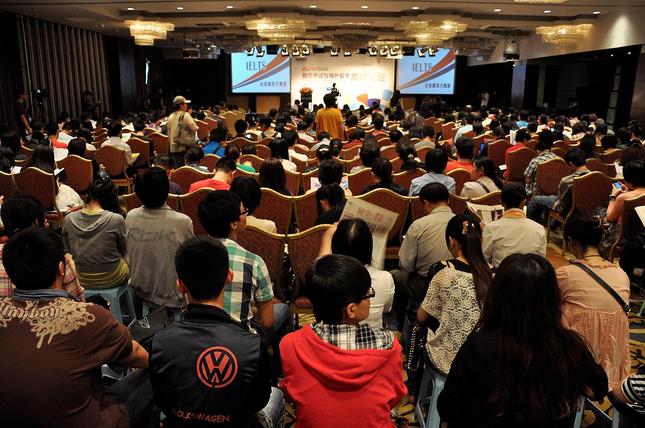隨著出國留學人群的增加,競爭的加劇,各國都提高了對學生語言能力的要求,這就使得更多的學生及家長熱切關(guān)注2012年雅思考試的趨勢及出國留學動態(tài),以便盡早地為留學做好規(guī)劃。5月13日下午,北京新東方學校在中關(guān)村附近某酒店舉辦的“雅思考試與海外留學高峰論壇“,就吸引了大量對雅思考試感興趣的學生家長。現(xiàn)場約五百人的場地座無虛席,甚至有小“烤鴨”席地而坐,認真聽取備考建議。
