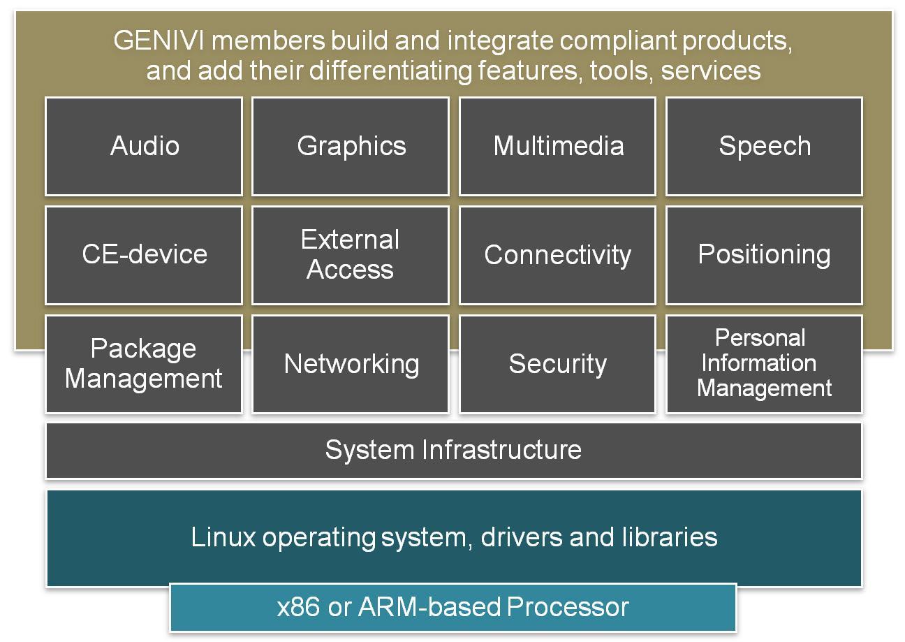 明導(dǎo)國(guó)際等聯(lián)盟成員依據(jù)這個(gè)規(guī)范來(lái)建立車(chē)載信息娛樂(lè)系統(tǒng)軟件平臺(tái)。這些平臺(tái)將受到 GENIVI 的審核,如果符合規(guī)范就會(huì)被注冊(cè)為 GENIVI 合規(guī)產(chǎn)品。盡管有些成員提供的是一個(gè)完整的 GENIVI 平臺(tái),但聯(lián)盟其他成員也可以集中精力只研究一個(gè)合規(guī)平臺(tái)的單個(gè)或多個(gè)部件。