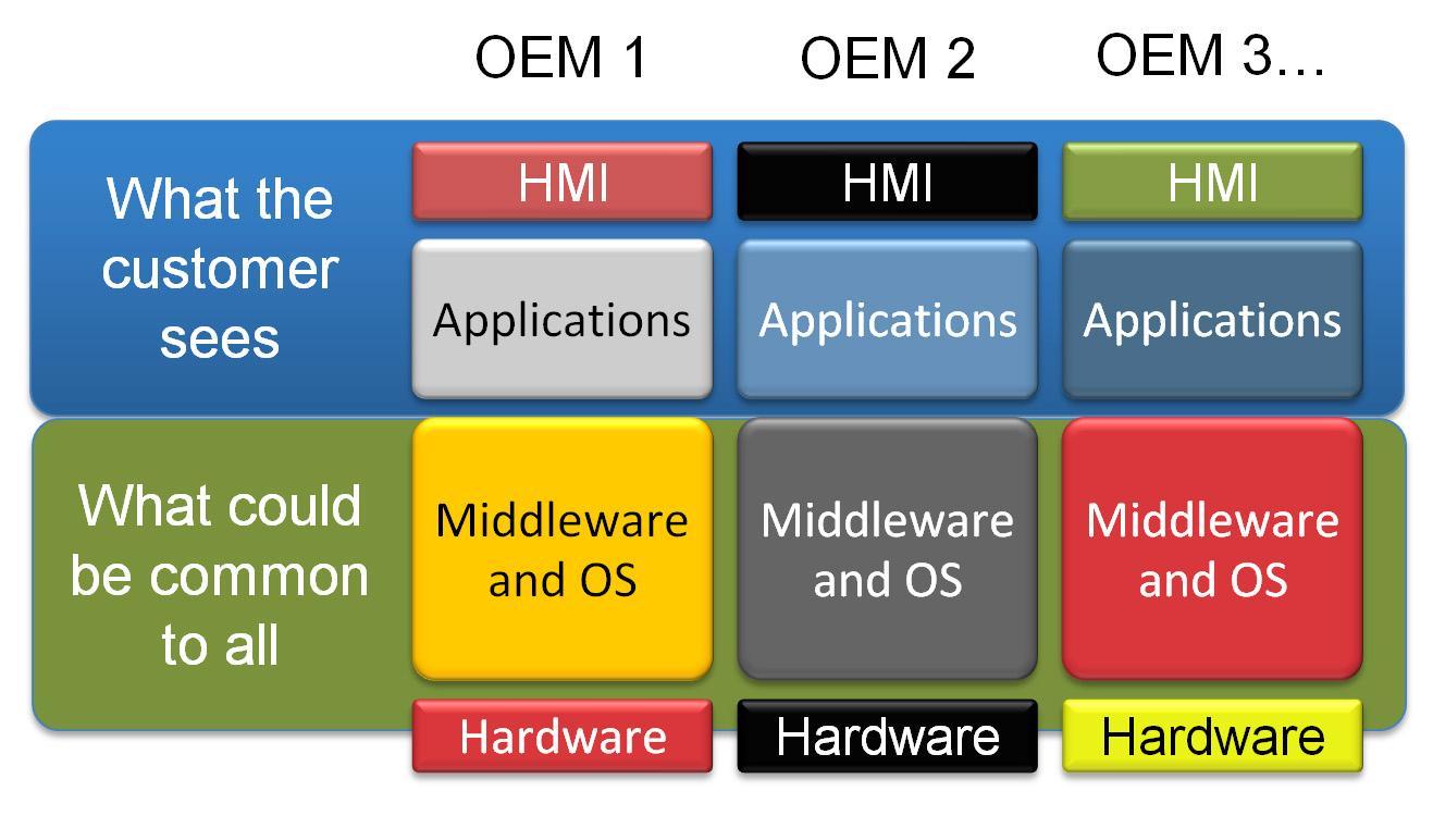 基于以上原因,非營(yíng)利 GENIVI 聯(lián)盟在四年前成立。GENIVI 聯(lián)盟的成員現(xiàn)在包括170多家汽車(chē)生產(chǎn)商和供應(yīng)商,其宗旨是共享一個(gè)標(biāo)準(zhǔn)的車(chē)載信息娛樂(lè)系統(tǒng)開(kāi)發(fā)的開(kāi)源平臺(tái)。
