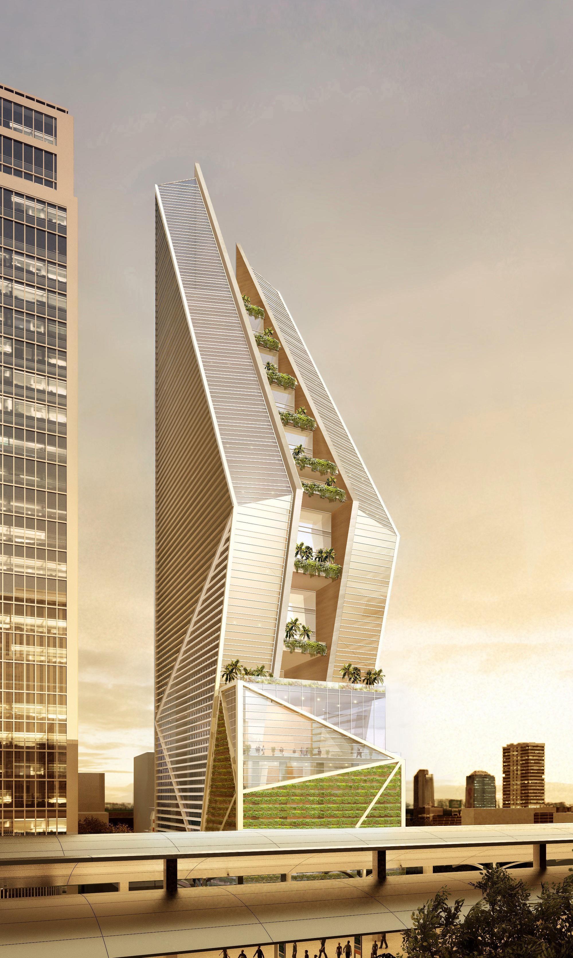 來自紐約的 KPF 建筑設計事務所(Kohn Pedersen Fox Associates)與當地設計公司(Tandem Architects)合作,將瑰麗 A Sense of Place®的品牌理念融入酒店設計,以彰顯泰國的悠久歷史和文化習俗。酒店將由兩幢相連高樓組成,其結構更以泰國傳統雙手合十的問候手勢“wai”為設計意念。兩幢高樓的中庭將建有茂密的豎直花園,與泰國的熱帶環境相呼應。